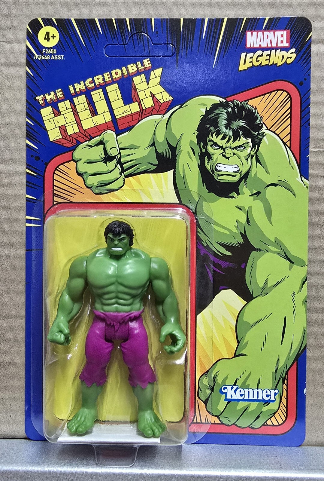 Bring home the ultimate Marvel Legends Retro action figure of The Incredible Hulk, standing at 3.75 inches tall and ready for battle. This original, licensed reproduction by Hasbro features the iconic green color and comes in its original packaging, unopened and boxed. Perfect for collectors and fans of the franchise, this action figure is a must-have addition to any collection.