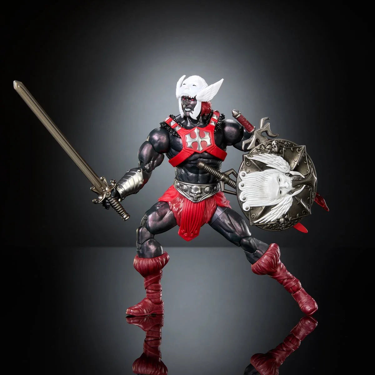 This MOTU Masterverse Anti-Eternia He-Man action figure is inspired by a graphic novel version of the character. Designed at 7-inch scale with 30 points of articulation, this menacing-looking He-Man comes with alternate hair, a ferocious-faced shield, an evil Power Sword and 2 additional swords he's collected. His armor includes a classic chest harness and a very non-traditional helmet. The Most Evil Man in the Universe comes with the high level of detail collectors expect and is beautifully packaged in a window box suitable for display. This Anti-Eternia He-Man makes a great addition to any Masters of the Universe collection; suitable for MOTU fans ages 6 years and older.