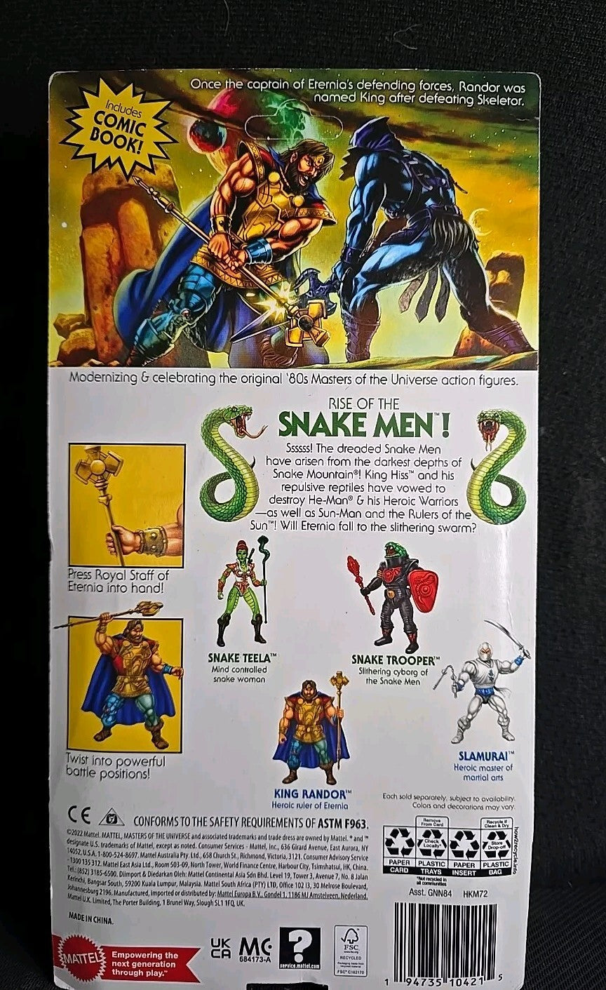 This Masters of the Universe Origins King Randor 200X figure is a must-have for any fan of the franchise. With a retro-style packaging and a 1:12 scale, this original Mattel action figure is ready to be added to your collection. The figure comes with a mini comic book, weapon, and is made of durable plastic material.
