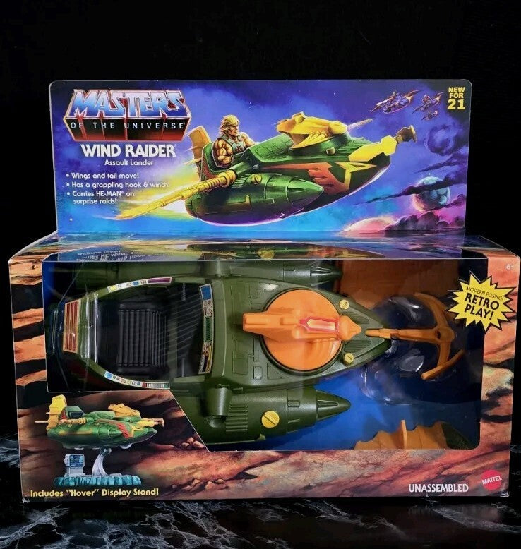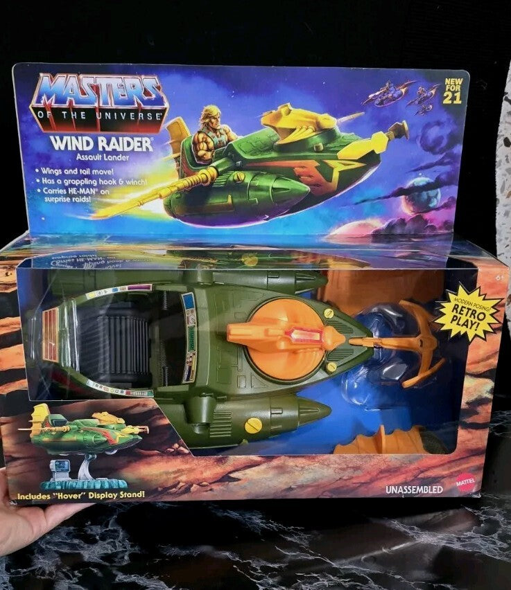 Get ready to embark on an intergalactic adventure with the Mattel Masters of The Universe Wind Raider Vehicle Action Figure. This original, licensed reproduction is perfect for fans of the iconic He-Man TV show and franchise. The set includes a durable plastic vehicle that is ready to ship and an action figure of the character Raider. The vehicle type is a ship and the material is plastic.