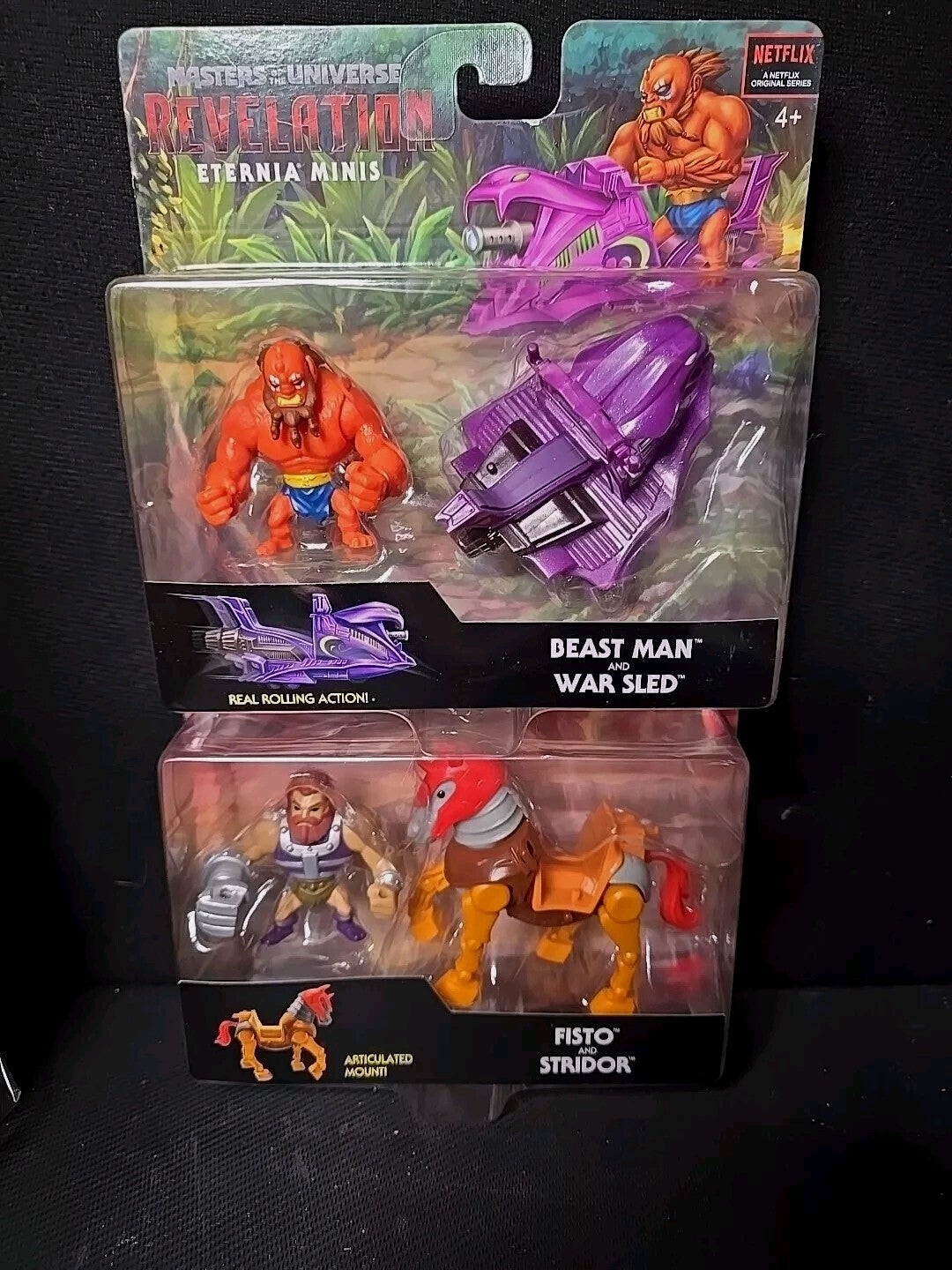 Masters of the Universe Revelation Eternia Minis Fisto & Stridor and Beast Man & war Sled