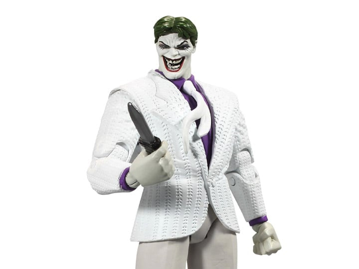 This DC Multiverse action figure features the iconic villain, The Joker, standing at 7 inches tall, with a width of 3 inches and a length of 4 inches. It comes with exclusive blades and a horse vehicle type, making it a must-have for fans of the Batman franchise. The item is an original, licensed reproduction, and is part of the McFarlane Toys DC Multiverse series.