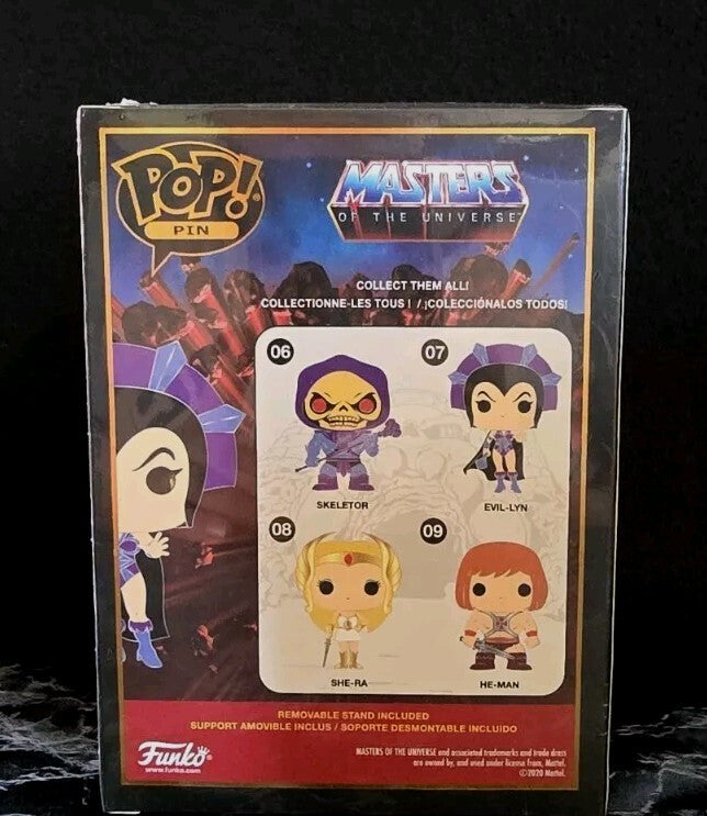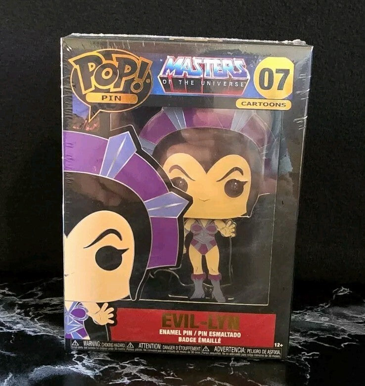 Add this FUNKO POP! Pins figure of Evil-Lyn from Masters of the Universe to your collection today! This vinyl figure stands at 3 3/4 inches tall and is perfect for fans of the iconic TV show. With its detailed design and high-quality construction, this action figure is sure to impress both collectors and kids alike.