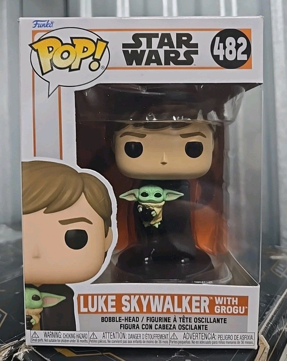 The Funko Pop! Star Wars Luke Skywalker with Grogu #482 is a vinyl figure featuring the character Luke Skywalker from the Star Wars franchise. This standard-sized collectible, released in 2021, comes in its original packaging with a plastic protector included. The figure showcases Luke Skywalker alongside Grogu, also known as Baby Yoda, in a multicolor design. It is part of the Pop product line by Funko and is an exclusive item related to Star Wars, manufactured in Vietnam. Perfect for fans of the Star Wars series, this collectible is suitable for ages 3 and up.