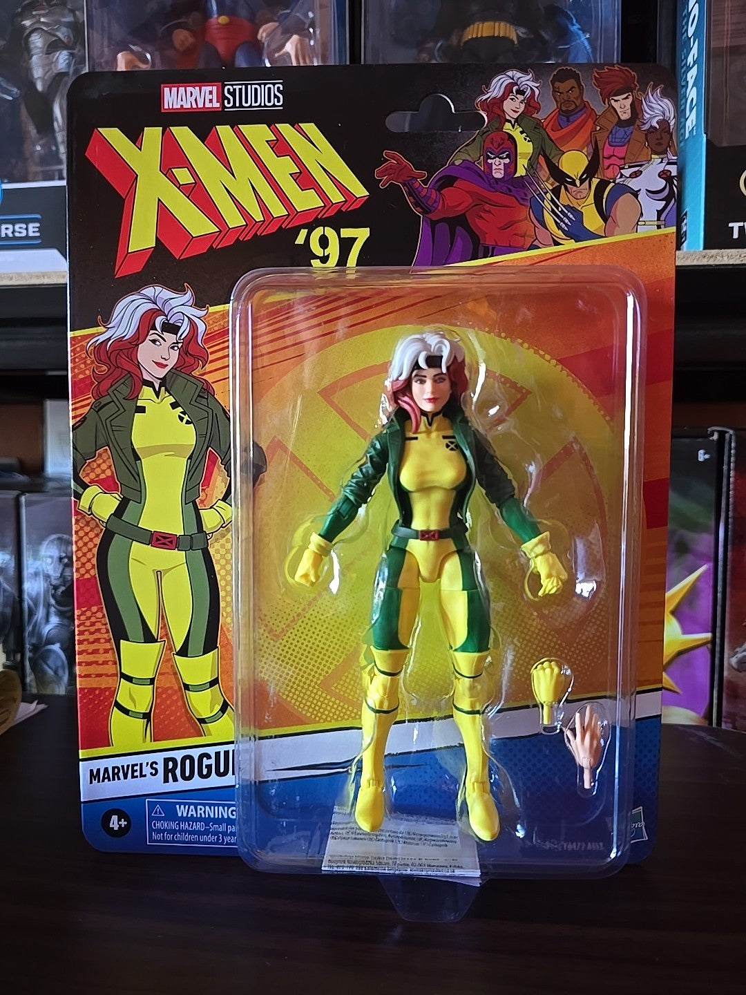 The Hasbro Marvel Legends X-Men 97 Rogue Action Figure is a 11-inch tall figure based on the character Rogue from the X-Men franchise. This exclusive action figure features adjustable parts and comes in original packaging. Made of ABS plastic, this 1:12 scale figure is part of the X-Men 97 animated series, perfect for fans of comic book heroes and collectors of Marvel memorabilia. With a colorful design and detailed features, this Rogue action figure is a must-have for any X-Men enthusiast.