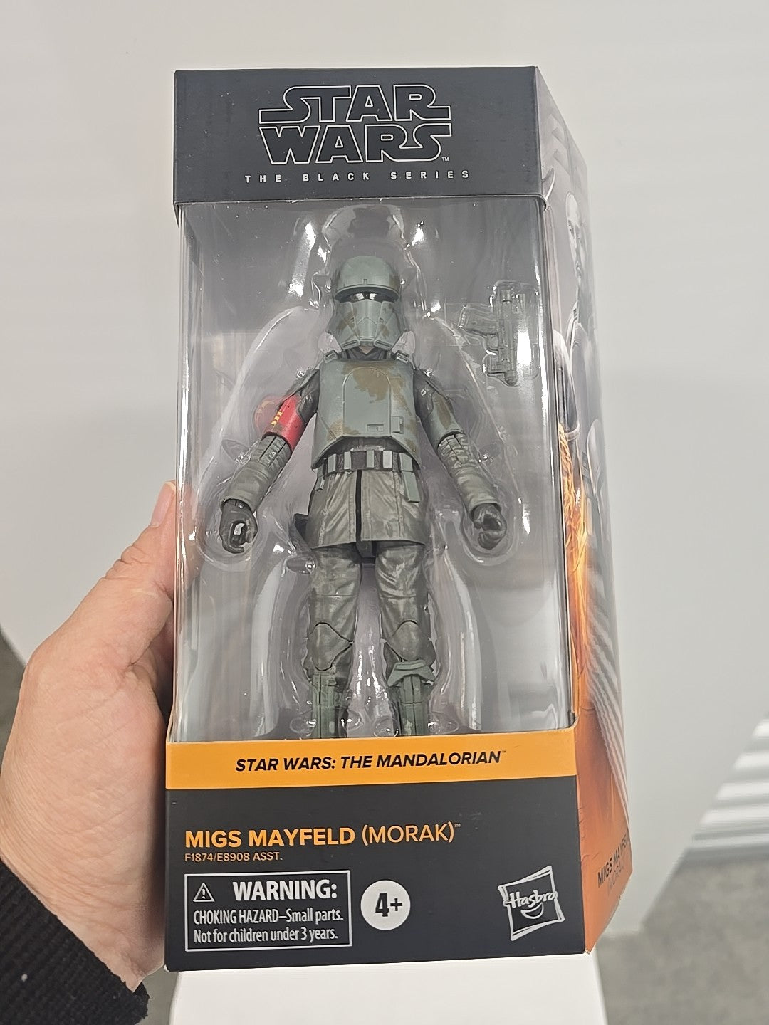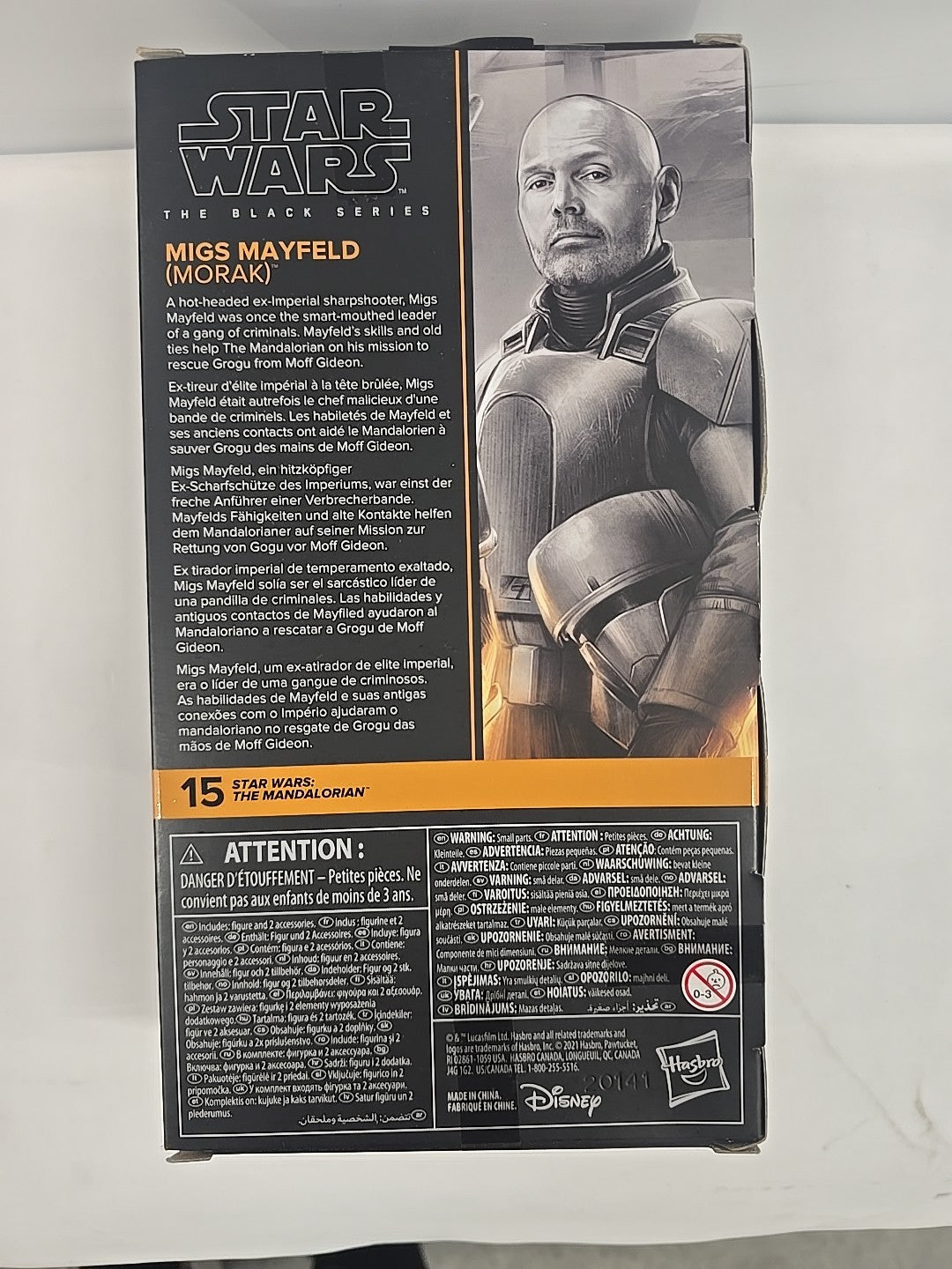 The Hasbro Star Wars The Black Series Migs Mayfeld 6 inch Action Figure is a collector's edition item featuring the character from the TV show "The Mandalorian." This action figure stands at 6 inches tall and comes in a boxed packaging, perfect for fans of the Star Wars franchise. With its detailed design and high-quality materials, this item is a must-have for any Star Wars collector or enthusiast.