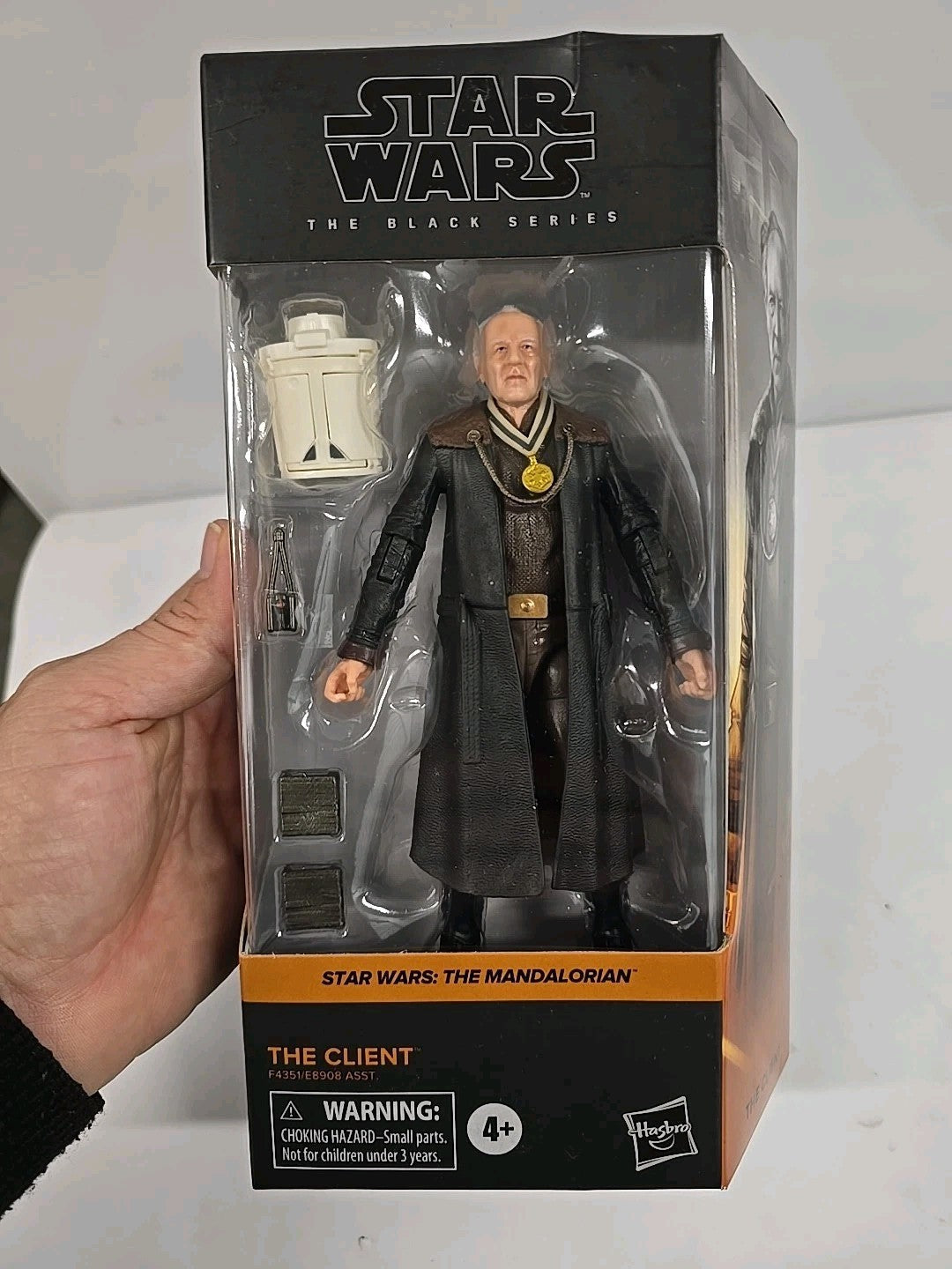 The Hasbro Star Wars The Black Series The Client #20 from The Mandalorian is a 6" action figure that is packaged in its original, factory-sealed packaging. This collectible item is inspired by the Star Wars franchise and specifically by the TV show The Mandalorian. Made of plastic and featuring The Client character in multicolor attire, this toy is recommended for ages 4 and up. The figure stays true to its original design and is a must-have for any Star Wars fan or collector looking to add a unique piece to their collection.