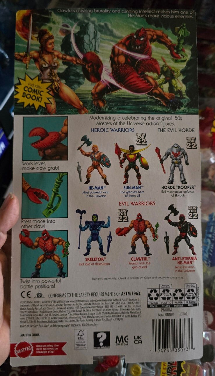 Bring home the iconic villains of Masters of the Universe with this Clawful action figure from Mattel's Universe series. With its intricate design and adjustable features, this 1:12 scale plastic figure stands at 5 inches tall, making it a perfect addition to any fan's collection.