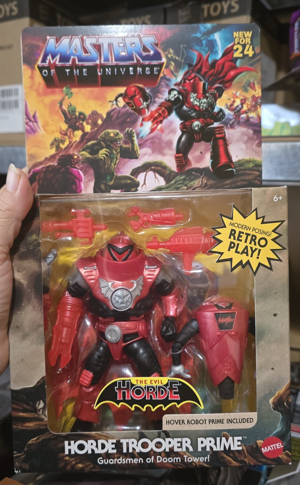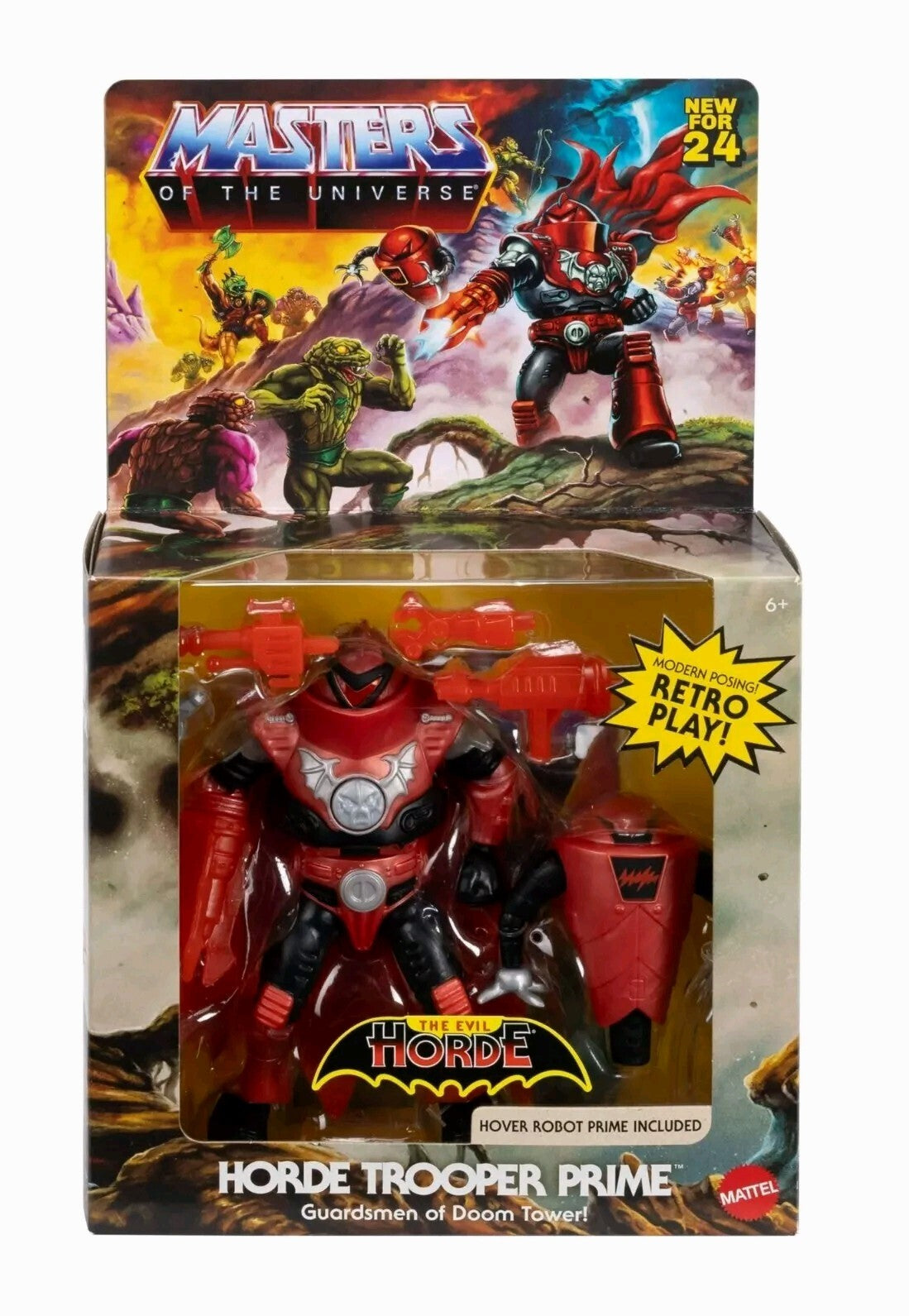 The "IN STOCK Masters of The Universe Origins Horde Trooper Prime Exclusive" is a red plastic action figure from the Masters of the Universe franchise by Mattel. This Walmart Exclusive item is part of the Motu Origins series and features the character Trooper from The Evil Horde. Manufactured in 2024 for ages 6 and up, this original action figure is not signed and is inspired by the Masters of the Universe TV show. It is a unique collectible representing the evil forces in the iconic Masters of the Universe universe.