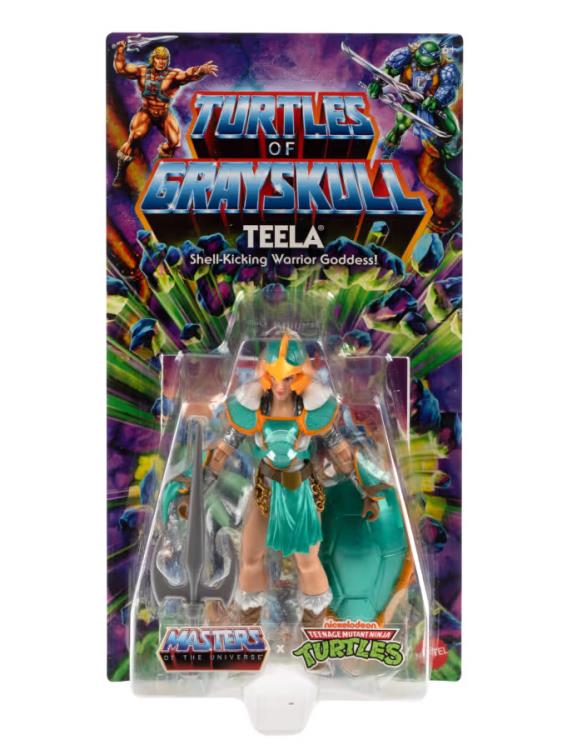 Introducing the Masters of the Universe TURTLES OF GRAYSKULL Teela Action Figure! This exclusive Mattel figure stands at 6 inches tall and features Teela, the character from the popular TV show, with a chest bodypart type and a plastic material. The figure is part of the Turtles of Grayskull series and is an original licensed reproduction.