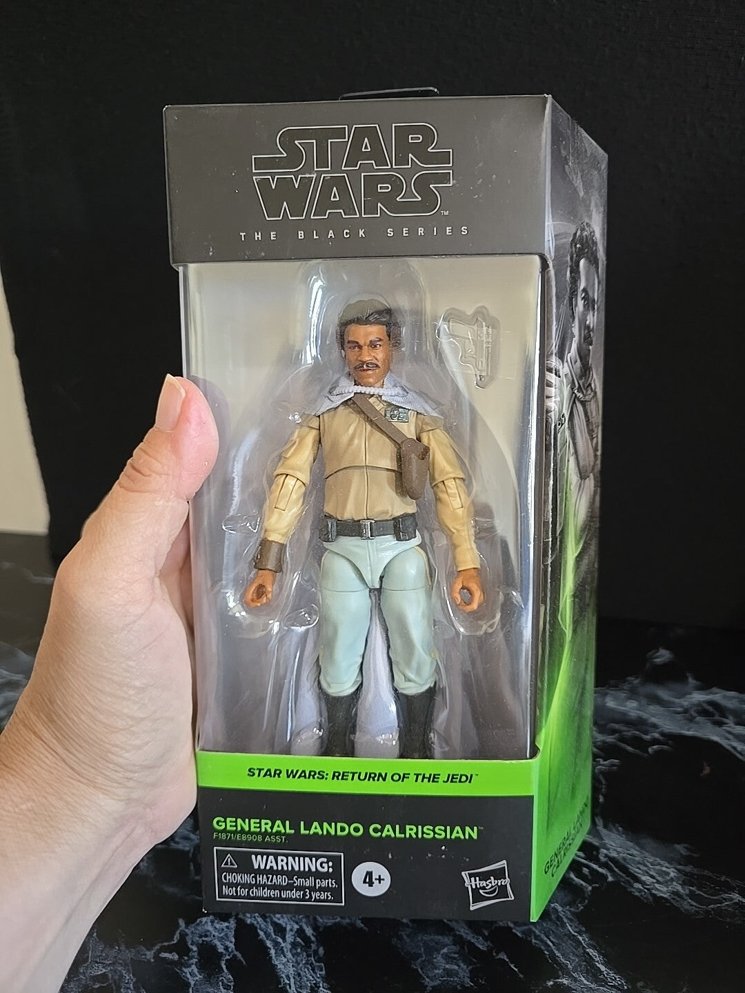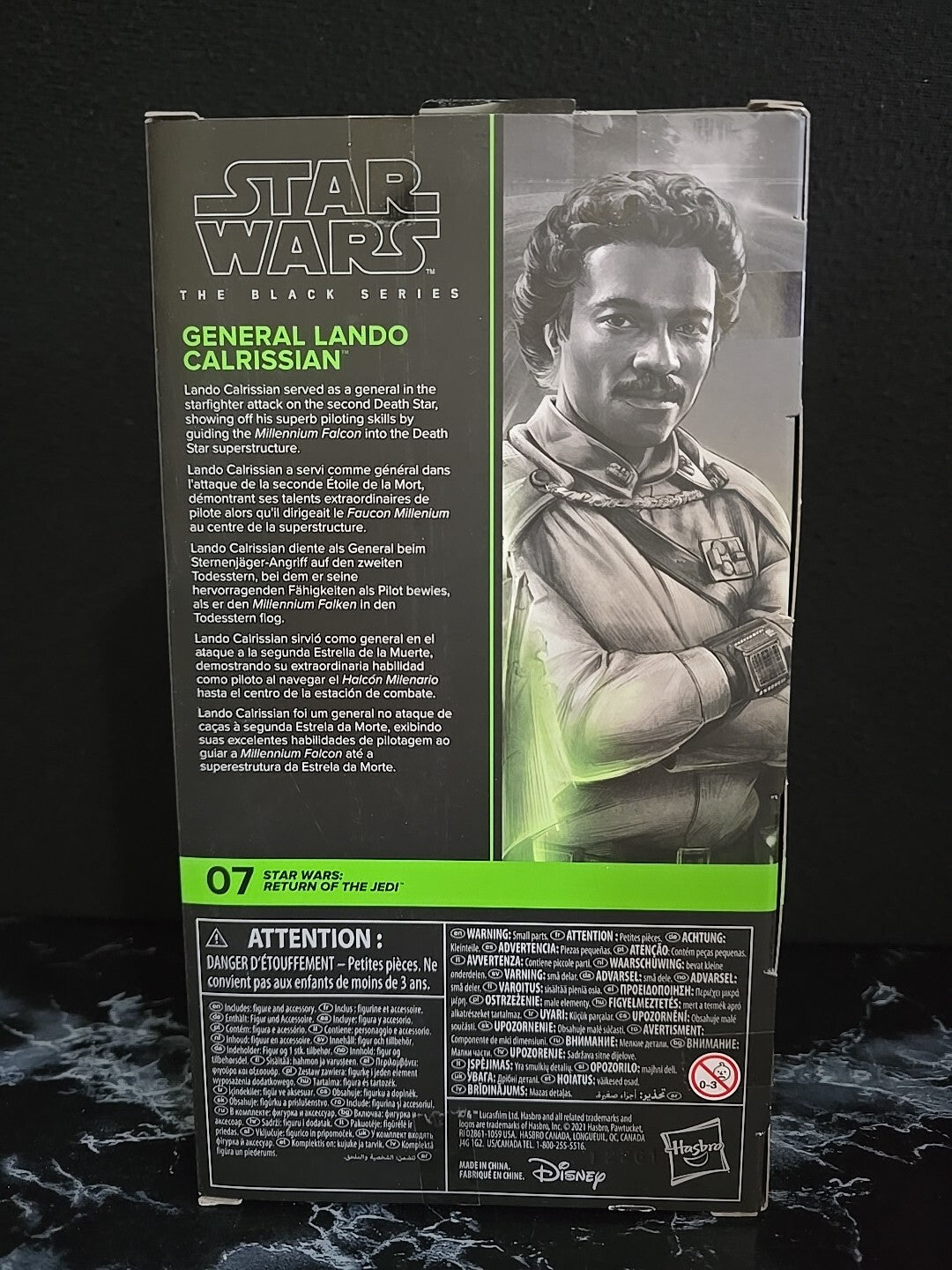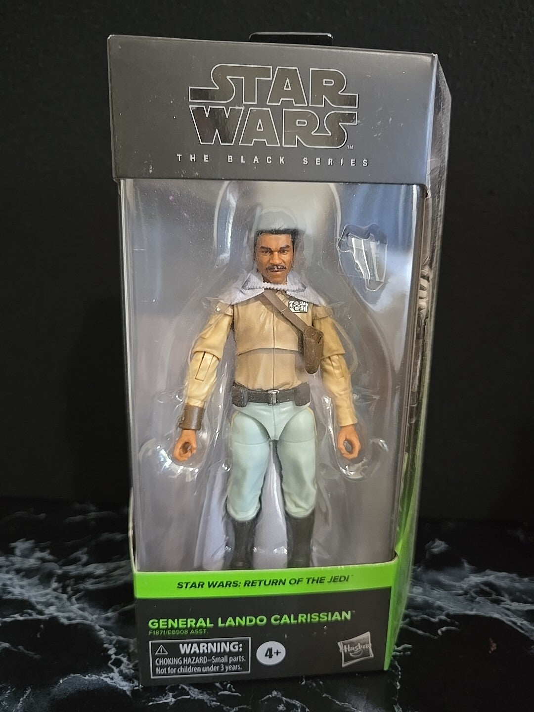 This is a brand new, sealed 6" action figure of General Lando Calrissian from the Star Wars franchise. The figure is part of the Black Series collection and is produced by Hasbro. It features Lando in his black outfit and is based on his character from Episode VI - Return of the Jedi and Star Wars: The Clone Wars. The item is perfect for collectors and fans of the series, and is a must-have for anyone who loves Star Wars.
