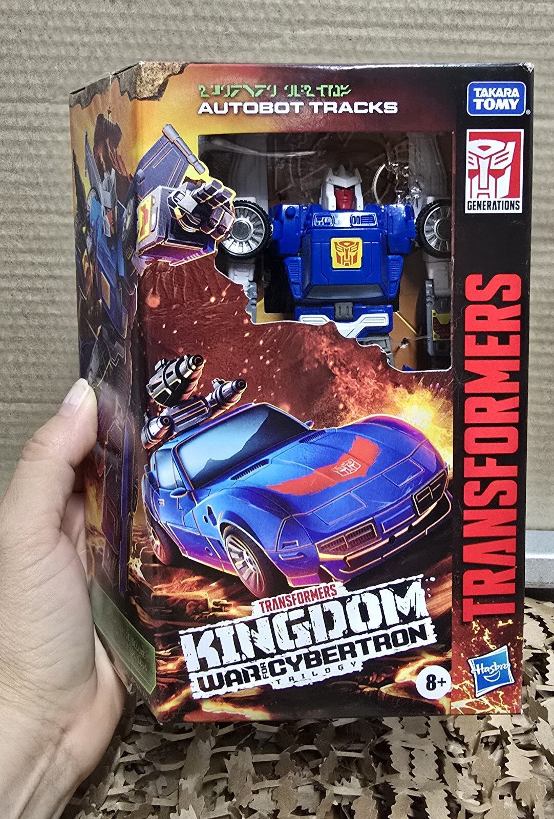 Get ready to join the battle for Cybertron with this Transformers Kingdom War For Cybertron Delux Autobot Tracks action figure. With its impressive 1:12 scale, this original and licensed reproduction by Hasbro features a transforming design and comes with an Assault Rifle for added playability. The multicolor figure represents the character of Tracks from the Transformers TV show and movie franchise, and is perfect for collectors and fans of all ages.