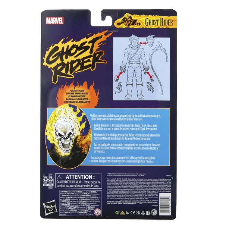 Bring the wonder of the Marvel Universe to your collection with Marvel Legends Series vintage Ghost Rider! Fully articulated 6-inch scale action figure is inspired by the character's appearance in Marvel comics. Comes with 6 accessories and retro-style blister card packaging.