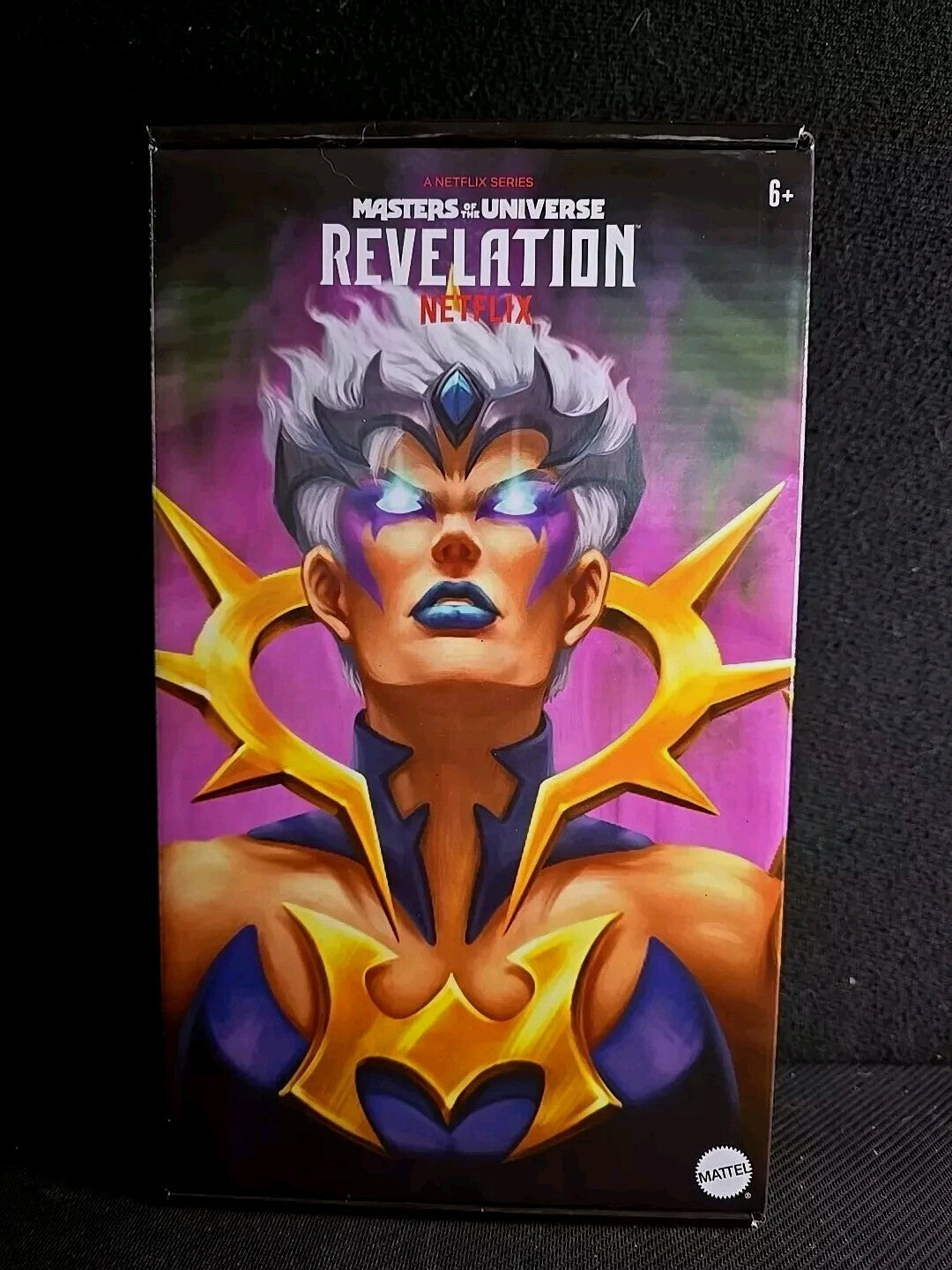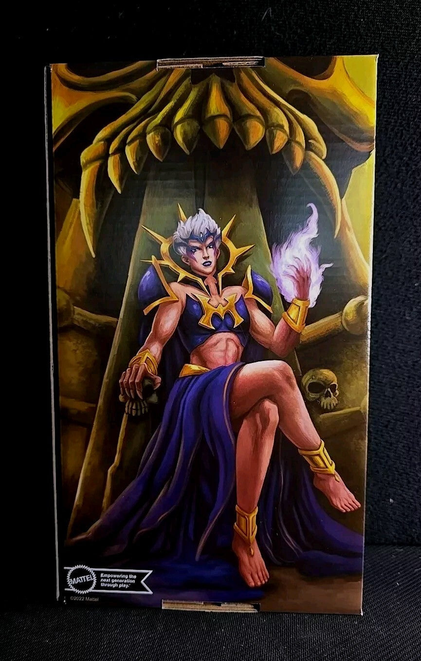 The action figure is constructed from durable plastic and is part of the 2023 lineup, ensuring it's a fresh addition to any Masters of the Universe collection. It's suitable for those aged 6 and up, allowing young enthusiasts to recreate their favorite scenes or imagine new adventures. Whether displayed on a shelf or used in play, this Dark Evil Lyn figure is a standout piece that brings the Masterverse to life.