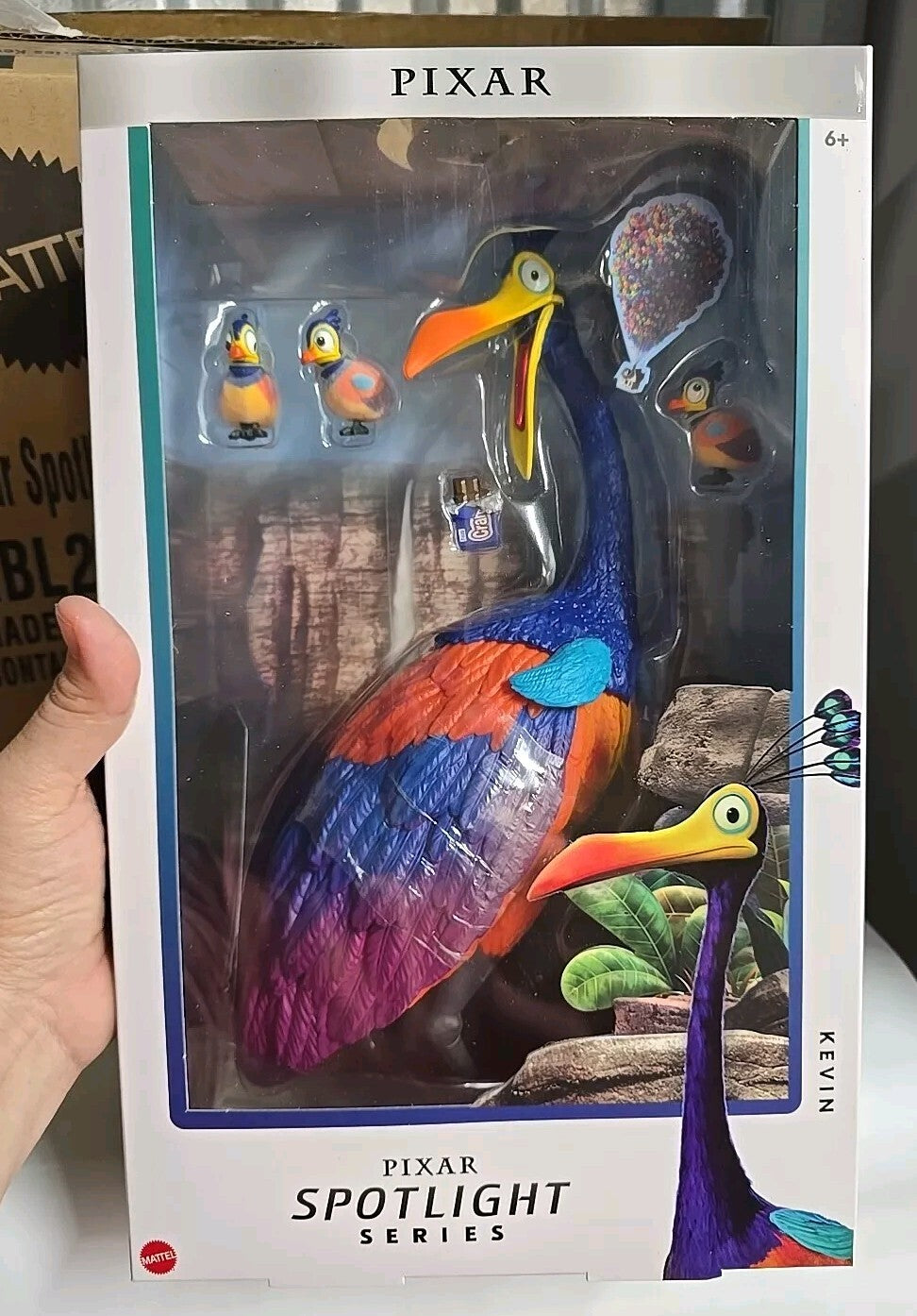 The NEW Disney Pixar Up Spotlight Series KEVIN Bird Figure from Mattel released in 2021 is an action figure based on the character Kevin from the movie "Up." This colorful multicolor figure of Kevin the bird is designed for ages 6 and up and is not a vintage item. It is part of a special release by Mattel for the San Diego Comic-Con event, making it a sought-after collector's item for fans of the film. The figure does not come signed and does not offer personalization options.