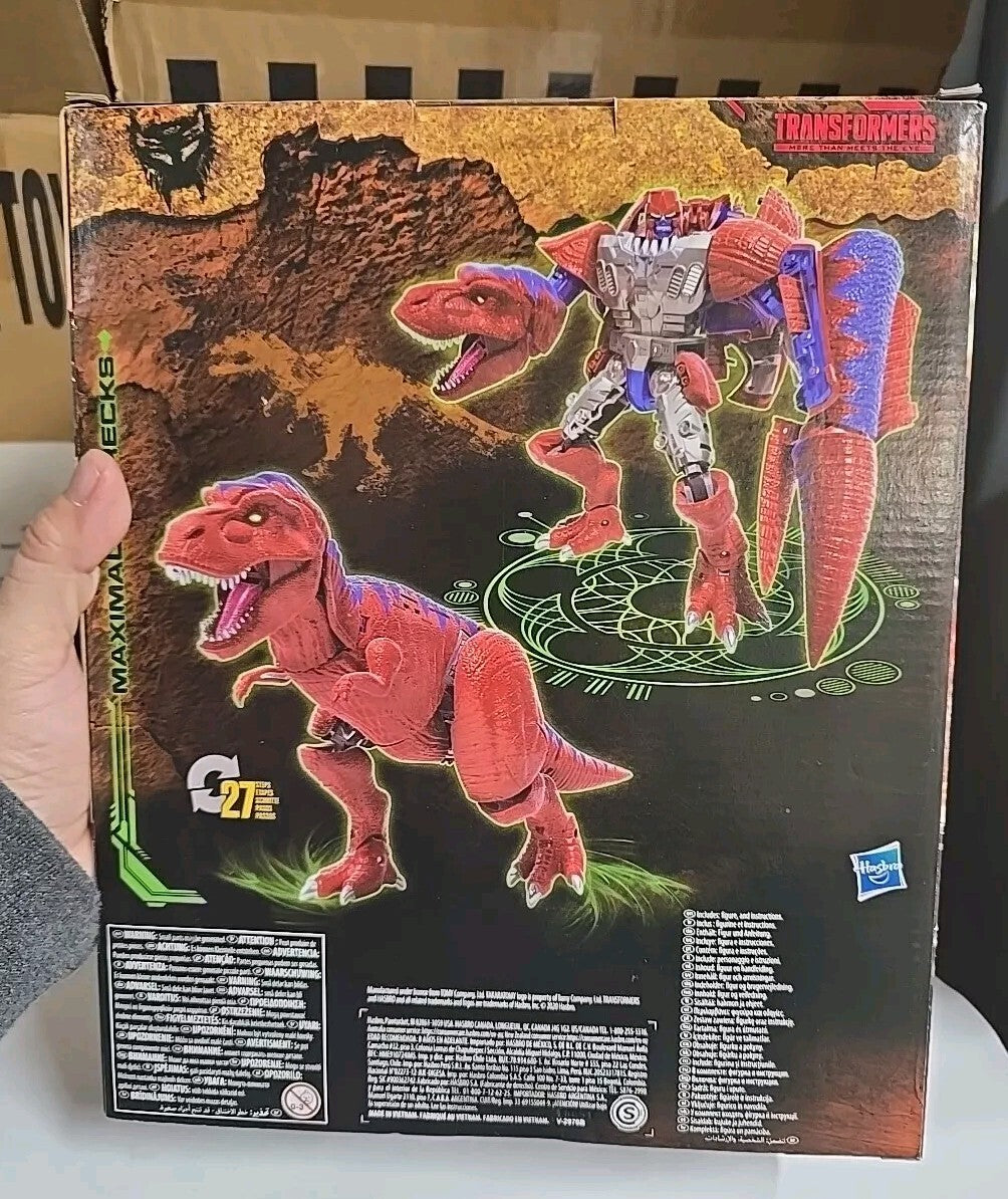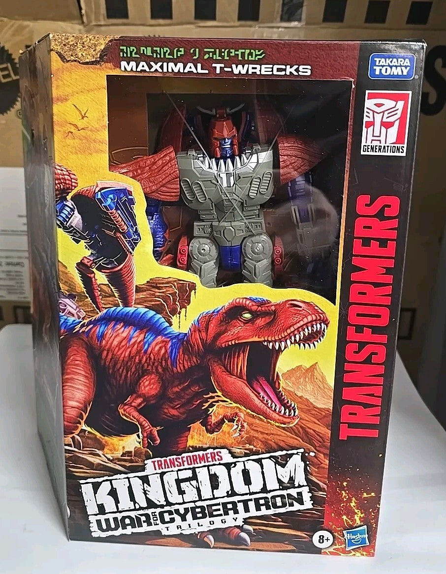 The product is a 2021 Hasbro Transformers War for Cybertron Kingdom Leader Maximal T-WRECKS action figure from the Transformers franchise. Made of plastic, this original Transformer features transforming capabilities and belongs to the Maximal faction. Designed as T-Wrecks, this action figure is part of the Transformers & Robots theme, with an artist credited as War. It was manufactured during the time period of 2000-2009.
