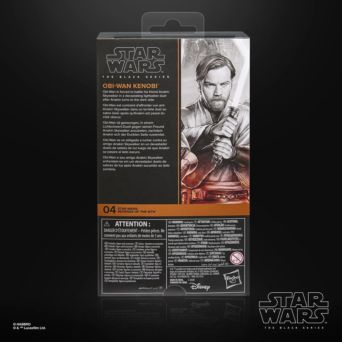 Star Wars The Black Series includes 6 inch action figures, vehicles, and roleplay items from the 40-plus-year legacy of the Star Wars Galaxy, letting fans create galactic scenes with a faithfulness to Star Wars comic books, movies, series, and more. This Star Wars Hasbro action figure is detailed to look like Obi-Wan Kenobi from Star Wars: Revenge of the Sith. With exquisite features and decoration, The Black Series embodies the quality and realism that Star Wars devotees love. May the Force be with you! (Additional products each sold separately. Subject to availability.)  Ages 4 and up.