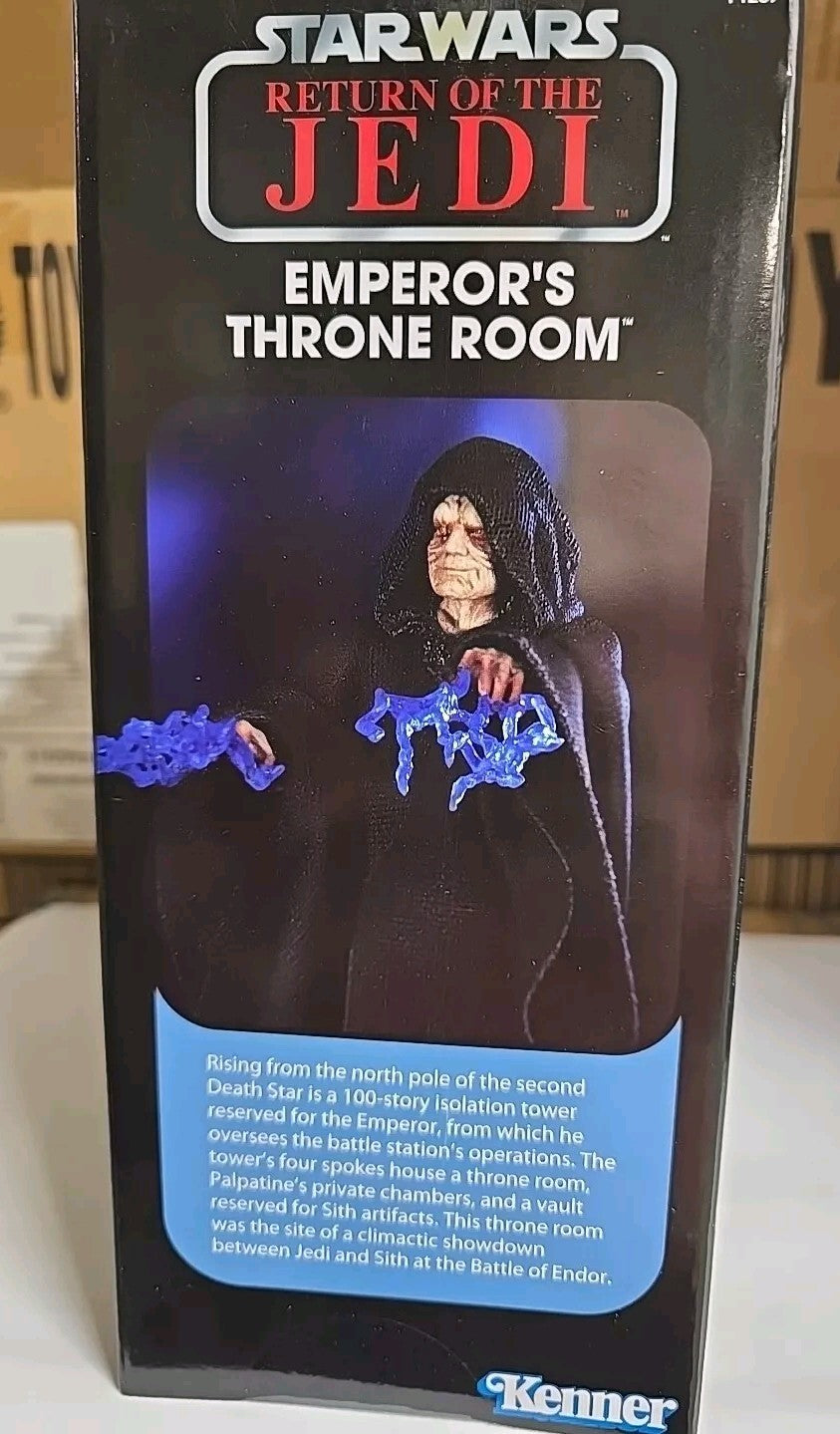 This Star Wars The Vintage Collection 3.75" action figure portrays Emperor Palpatine in his throne room from Episode VI - Return of the Jedi. The figure is made of durable plastic and comes in its original unopened packaging. The character is part of the Star Wars franchise and is an exclusive collectible item. The figure is 6 inches tall and is licensed by the original creators. It is a must-have for any Star Wars fan and collector.
