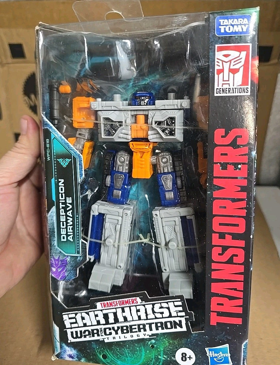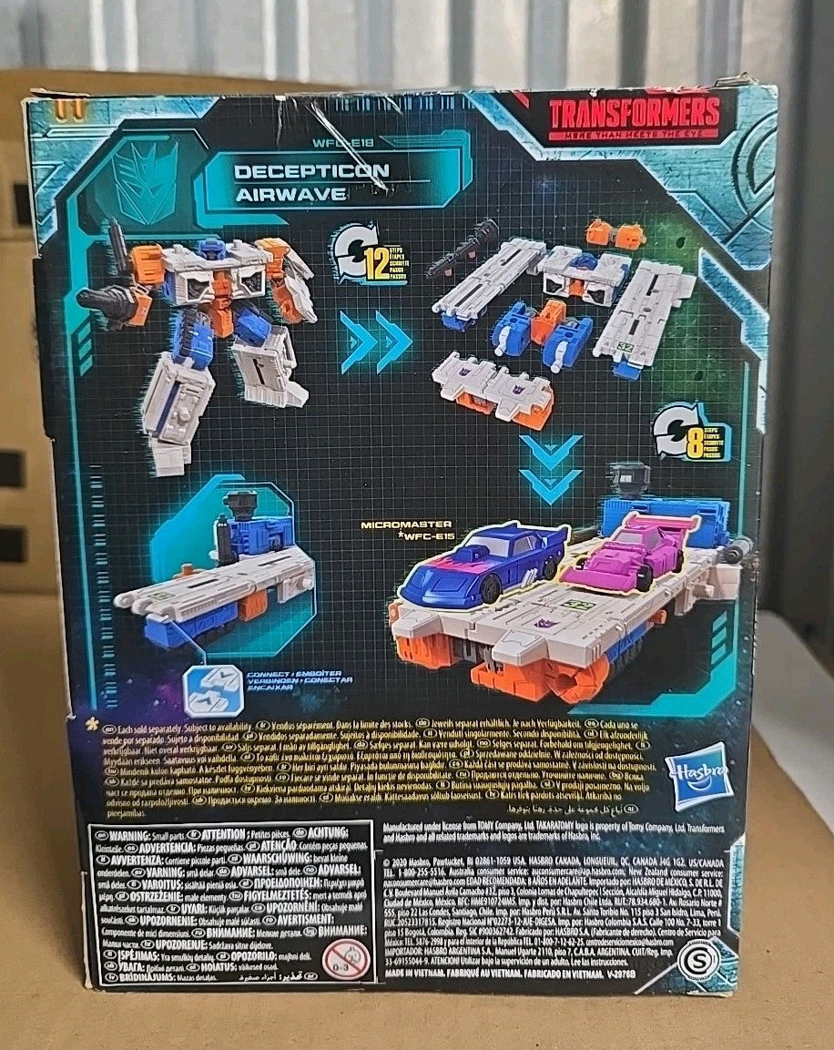 The "Transformers Generations War for Cybertron Earthrise Deluxe WFC-E18 Airwave" is a 5.5 inch action figure of the character Airwave from the TV show and movie Transformers. This original Hasbro product is part of the Earthrise series and features reissue, singing, and transforming capabilities. The figure is designed in a 1:12 scale and is made of ABS plastic and plastic materials, weighing 1.21 pounds. It is themed around Transformers & Robots and is recommended for ages 8 years and up, catering to fans of the Transformers franchise and collectors of action figures.